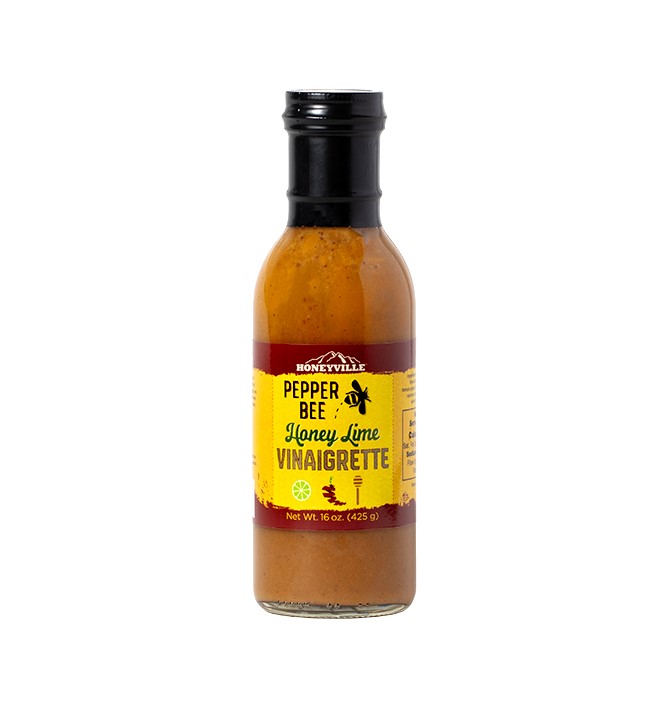 Pepper Bee Honey Lime Vinaigrette is a spicy, robust salad dressing made with chipotle peppers in adobo sauce, olive oil, fresh lime juice, southwest spices, and Honeyville Honey. Toss it with your favorite greens, bean and corn salad, splash over avocados or grilled meats. 15 oz.